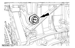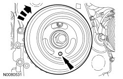 NOTICE: The crankshaft sprocket diamond washer may come off with the crankshaft pulley. The diamond washer must be replaced, remove and discard the diamond washer. If the diamond washer is not installed, engine damage may occur.