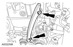 64. Remove the 2 bolts and the LH timing chain guide.