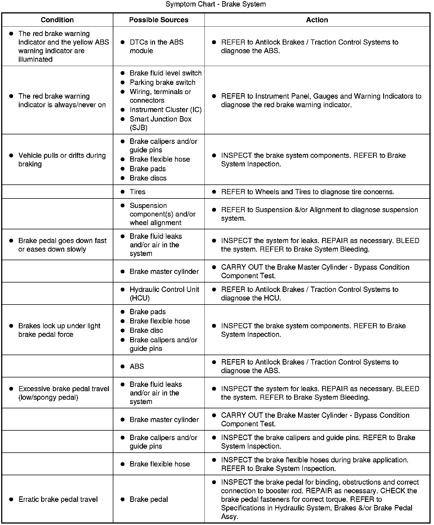 Symptom Chart - Brake System