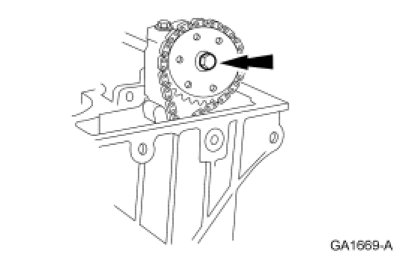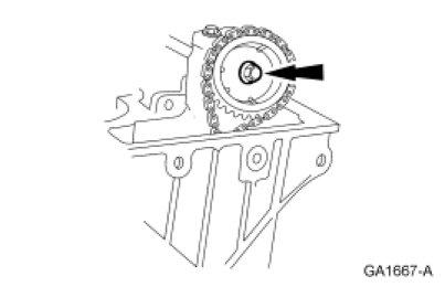 NOTE: The camshaft sprocket must turn freely on the camshaft. Do not tighten the bolt.