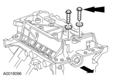 58. Install new seals on the 2 silver bolts and loosely install them in the cylinder block cradle.