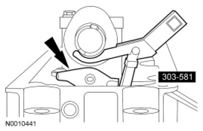 NOTE: The Crankshaft TDC Timing Tool must be installed on the damper and should contact the engine block, this positions the engine at TDC.