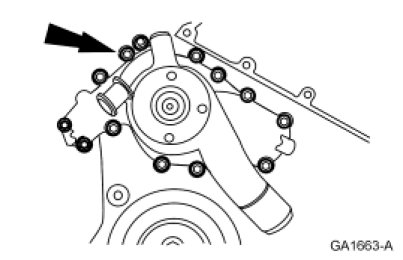 68. Install a new gasket, the coolant pump and the 13 bolts.