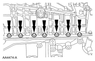 60. Tighten the cylinder block cradle bolts in 2 stages.