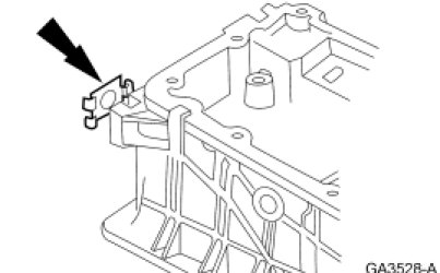 Using a straightedge, measure the mismatch between the transmission face of the cylinder block cradle with the rear face of the cylinder block.