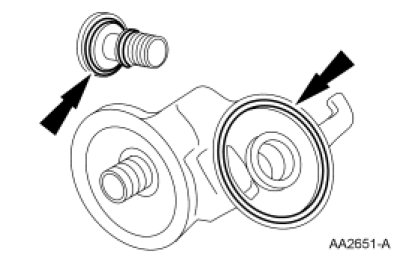 65. Inspect and install new oil filter adapter O-ring seals if necessary.