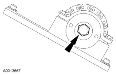 16. Loosen the LH camshaft sprocket bolt.