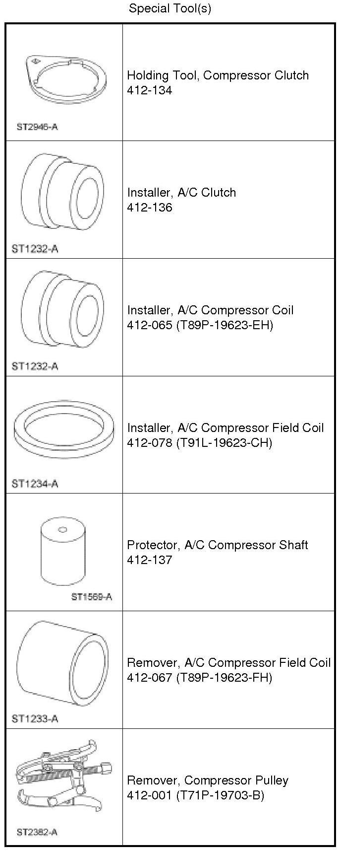 1. Remove the A/C compressor. For additional information, refer to Air Conditioning (A/C) Compressor - 4.0L Service and Repair or Air Conditioning (A/C) Compressor - 4.6L, 5.4L Service and Repair.