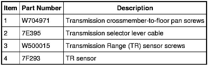 3. Remove the transmission crossmember-to-floor pan screws and lower the transmission enough to gain access to the Transmission Range (TR) sensor.
