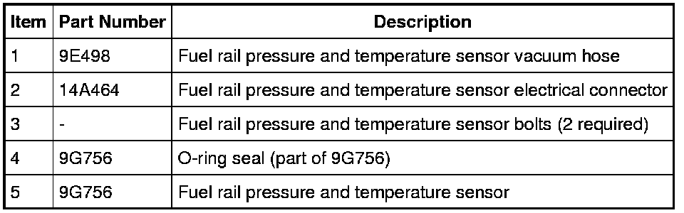 5. Remove the 2 bolts and the fuel rail pressure and temperature sensor.