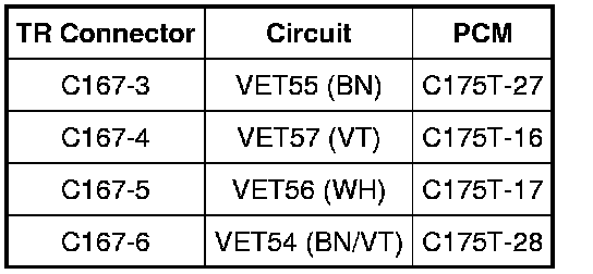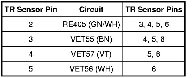 NOTE: Refer to the TR Sensor Diagnosis Chart within the Transmission Connector Layouts Transmission Connector Layouts procedure.