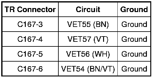 - Measure the resistance between the TR C167, harness side and ground using the following chart.