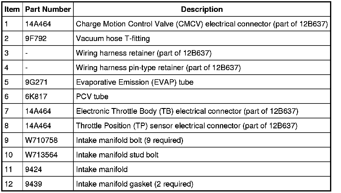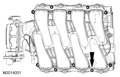 1. NOTICE: If the engine is repaired or replaced because of upper engine failure, typically including valve or piston damage, check the intake manifold for metal debris. If metal debris is found, install a new intake manifold. Failure to follow these instructions can result in engine damage.