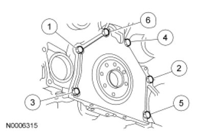 107. NOTE: The rear crankshaft seal retainer plate does not have a sealant groove. Gasket maker must be applied to the rear crankshaft seal retainer mating surface on the engine block.