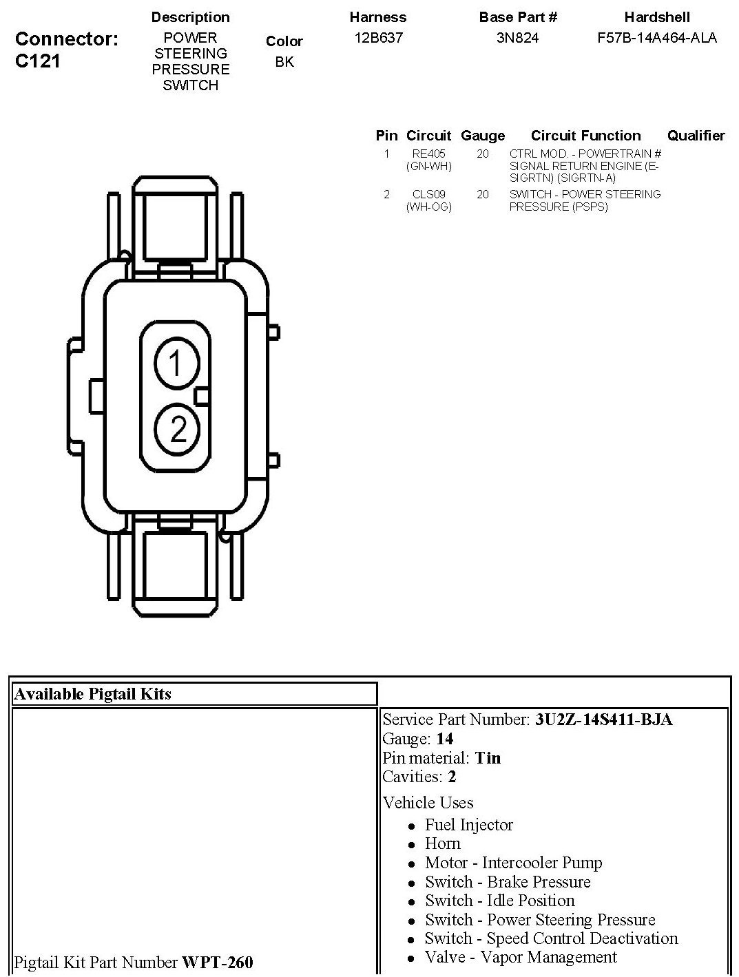 Power Steering Pressure Switch: Diagrams