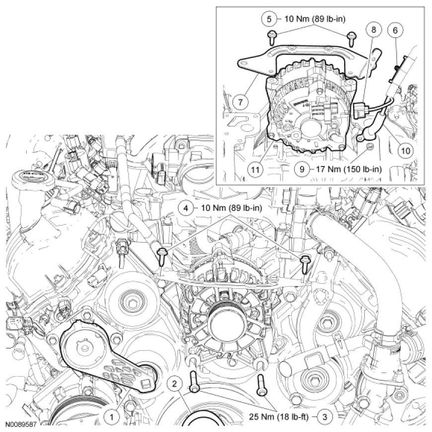 - To install, tighten to 25 Nm (18 lb-ft).