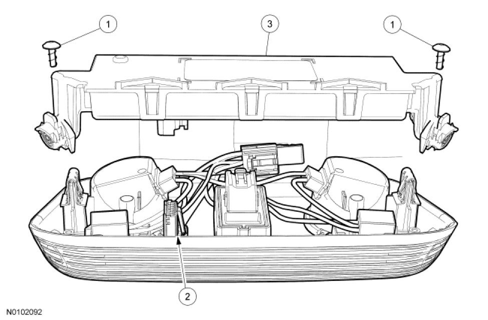 2. Remove the overhead console by pulling downward to release the 2 clips.