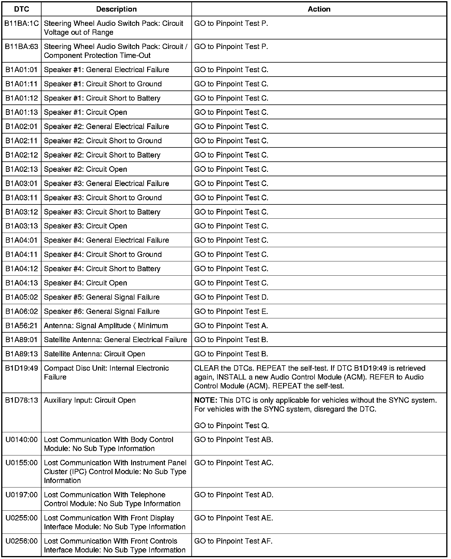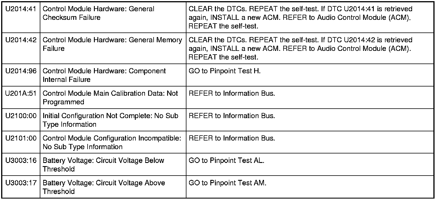 Audio Control Module (ACM) DTC Chart - Without Navigation