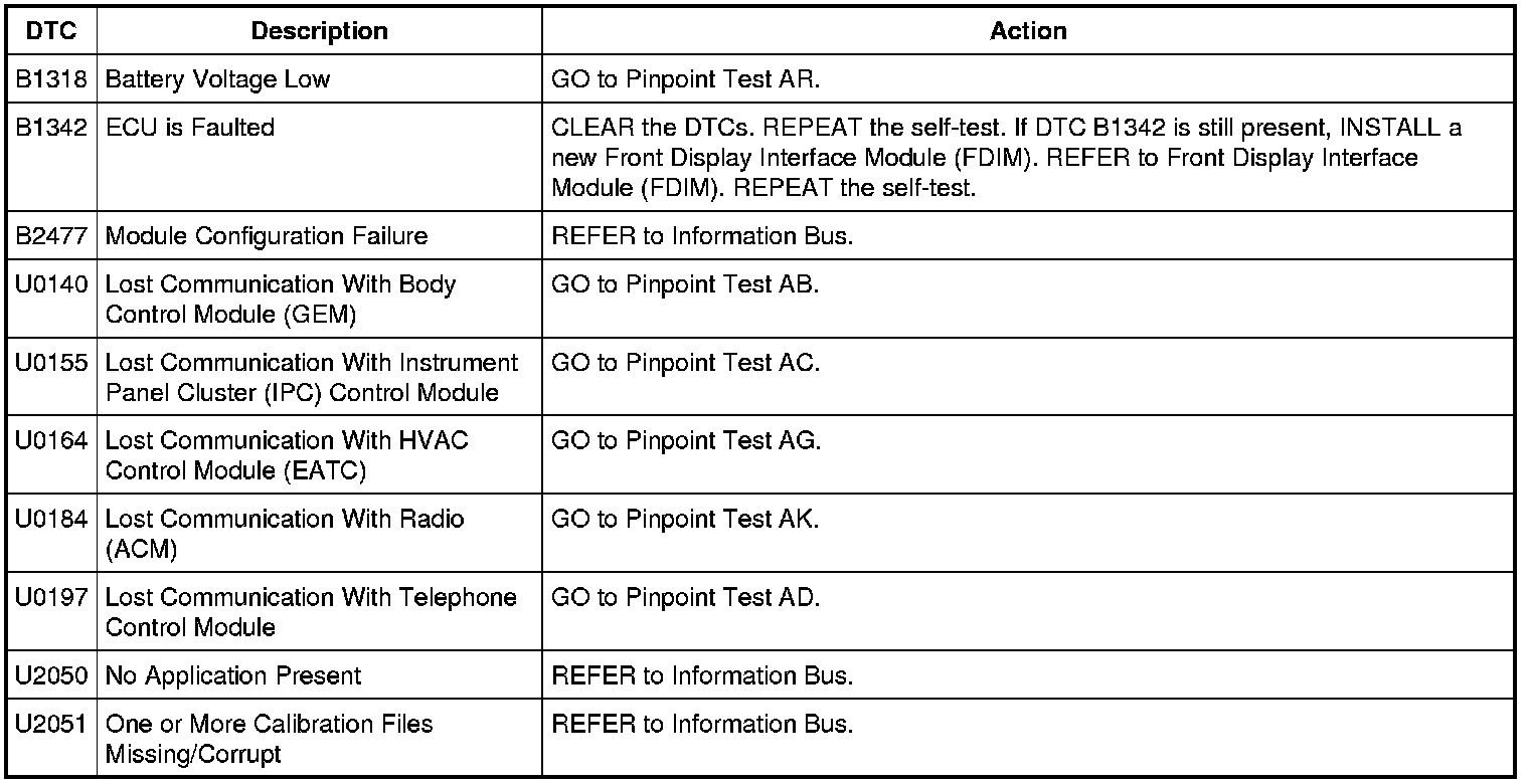 Front Display Interface Module (FDIM) DTC Chart - Without Navigation