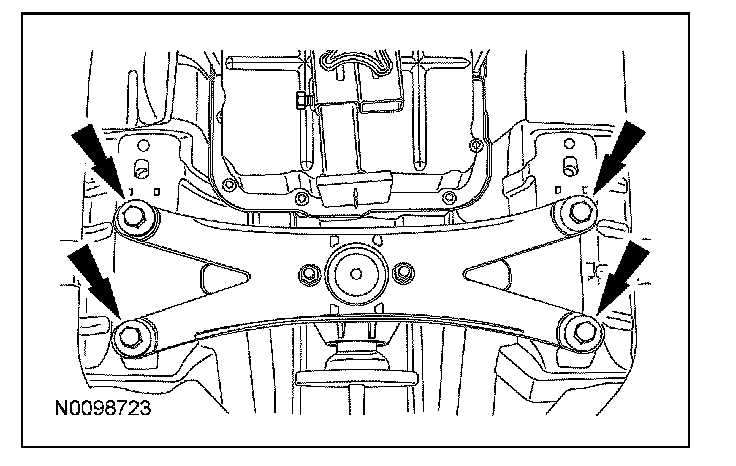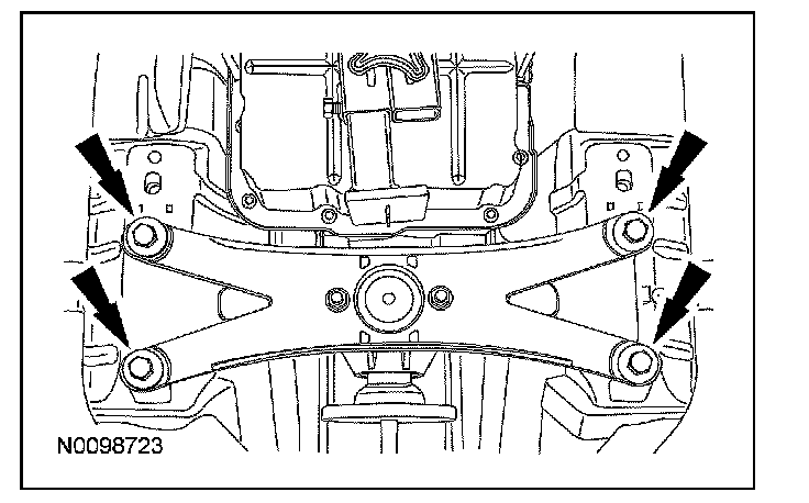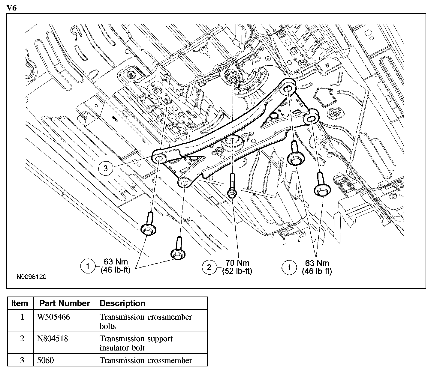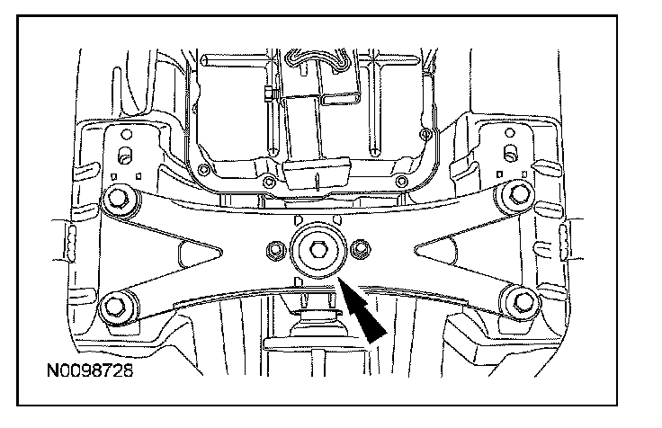 6. With the transmission support insulator neutralized, tighten the transmission crossmember bolts.
