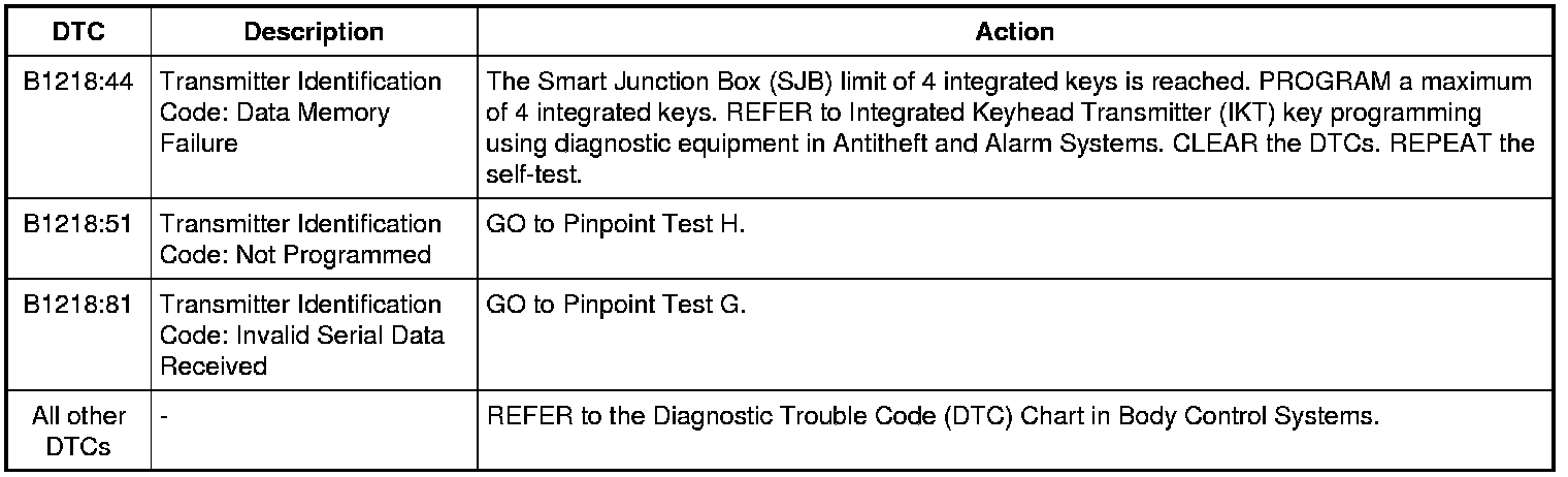 NOTE: This module utilizes a 5-character DTC followed by a 2-character failure-type code. The failure-type code provides information about specific fault conditions such as opens, or shorts to ground. Continuous memory DTCs have an additional 2-character DTC status code suffix to assist in determining DTC history.