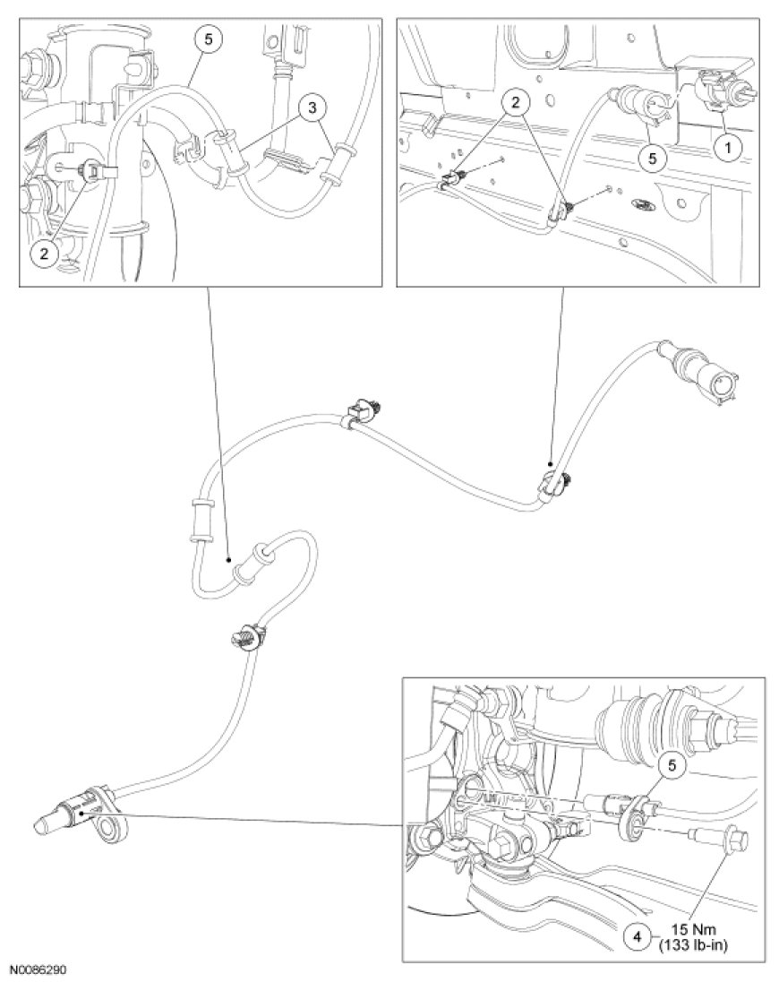 3. Disconnect the 3 wheel speed sensor harness pin-type retainers.