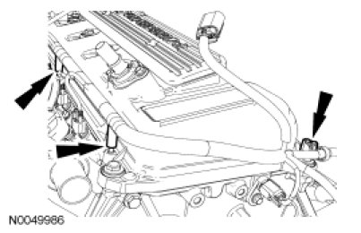 93. Attach the wiring harness retainers to the RH valve cover stud bolts.