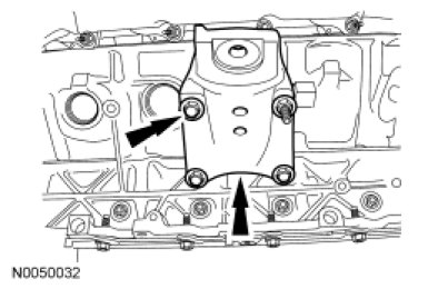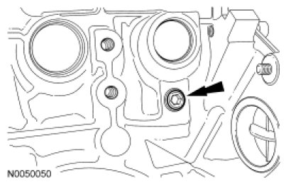 NOTICE: During engine repair procedures, cleanliness is extremely important. Any foreign material, including any material created while cleaning gasket surfaces, that enters the oil passages, coolant passages or the oil pan, can cause engine failure.