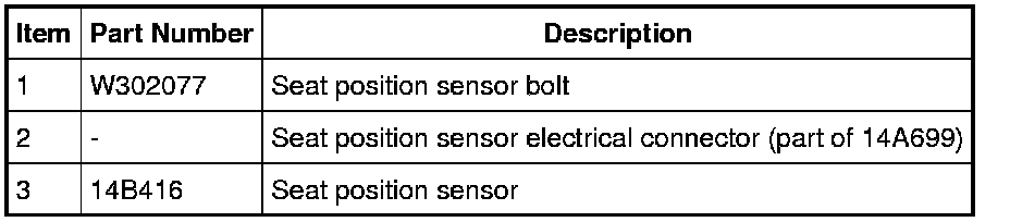 3. WARNING: Always tighten the seat position sensor retaining bolt to specified torque. Failure to do so may result in incorrect restraint system operation, which increases the risk of personal injury or death in a crash.