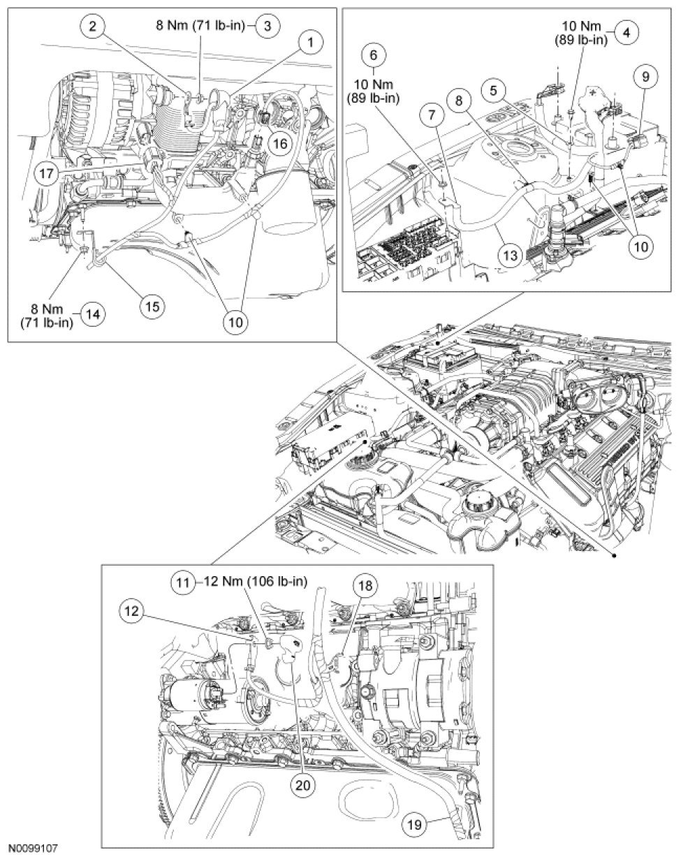13. Disconnect the battery cable in-line harness connector from the engine wiring harness connector.