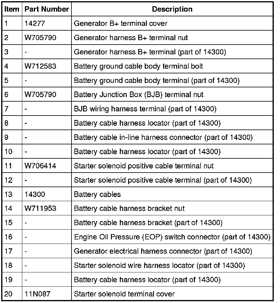 7. Remove the nut and the battery cable harness bracket from the oil pan, then position the battery cable harness aside.