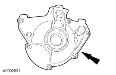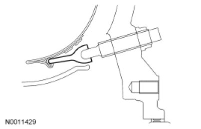 12. NOTICE: Use care not to damage the transmission fluid pan rail surface when installing the retaining pin.
