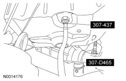 6. With the engine running, position the vehicle on a hoist and set it as close to level as possible. For additional information, refer to Vehicle Jacking and Lifting.