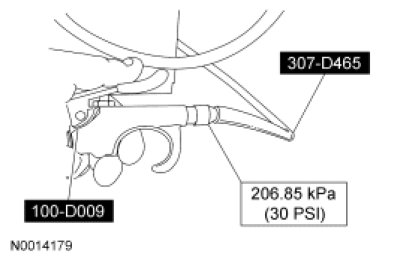 12. Apply a maximum of 206.85 kPa (30 psi) to the open end of the vacuum/pressure hose from the Rubber Tip Air Nozzle. Transmission fluid will immediately start flowing out of the Transporter Fluid Evacuator/Injector into the transmission fluid pan.