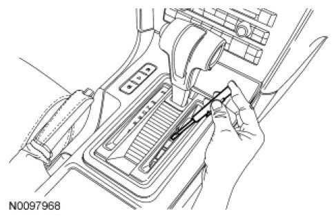 NOTE: If it is necessary to use the Brake Shift Interlock Actuator (BSIA) override procedure to move the selector lever out of the PARK position, it is possible that a fuse has blown and the brake lights are not operational. Before driving the vehicle, verify that the brake lights are working.