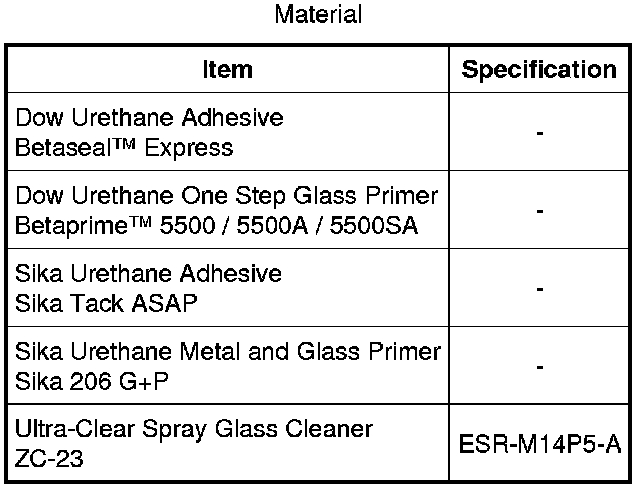 NOTE: Be sure to use the same brand and cure-rate products for the urethane adhesive and glass primer. Do not mix different brands of urethane adhesive and glass primer. For additional information, refer to the Material Chart in this procedure.