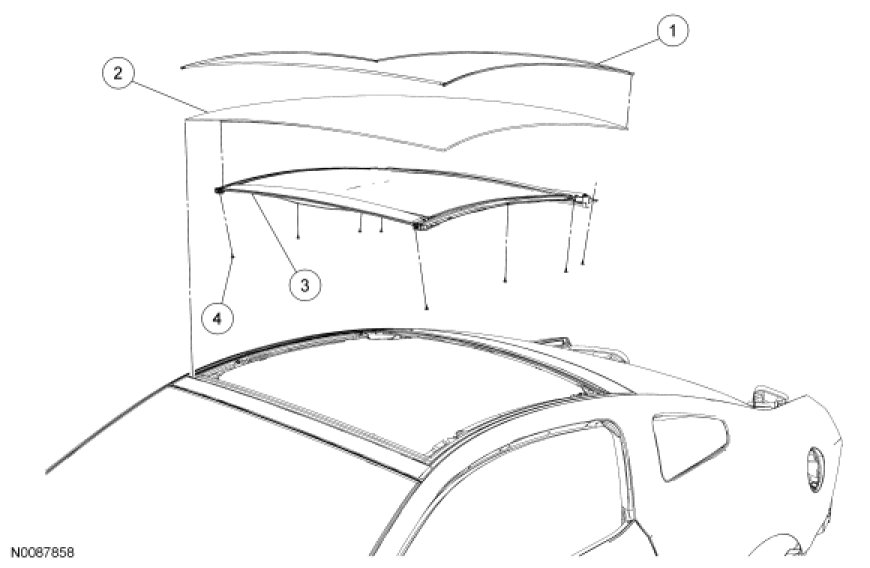 2. NOTE: The roof glass shade assembly is attached to the roof glass panel. The roof glass panel and roof glass shade assembly will be removed as an assembly.