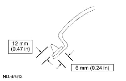 Using an appropriate tool, trim the urethane adhesive leaving a 1-2 mm (0.04-0.08 in) base of original equipment urethane adhesive on the pinch weld.