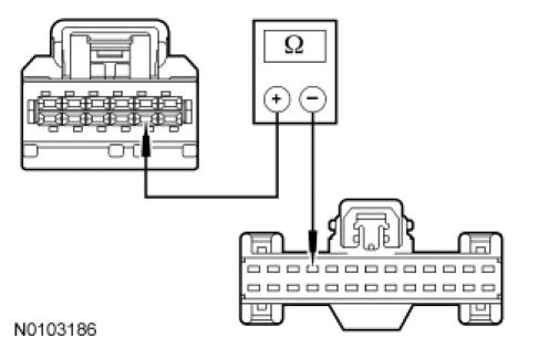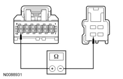 - Measure the resistance between heated seat module C359B-5, circuit GD903 (BK/WH), harness side and ground.