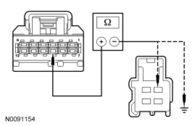 - Measure the resistance between heated seat module C359B-6, circuit CHS07 (GY/BU), harness side and ground.