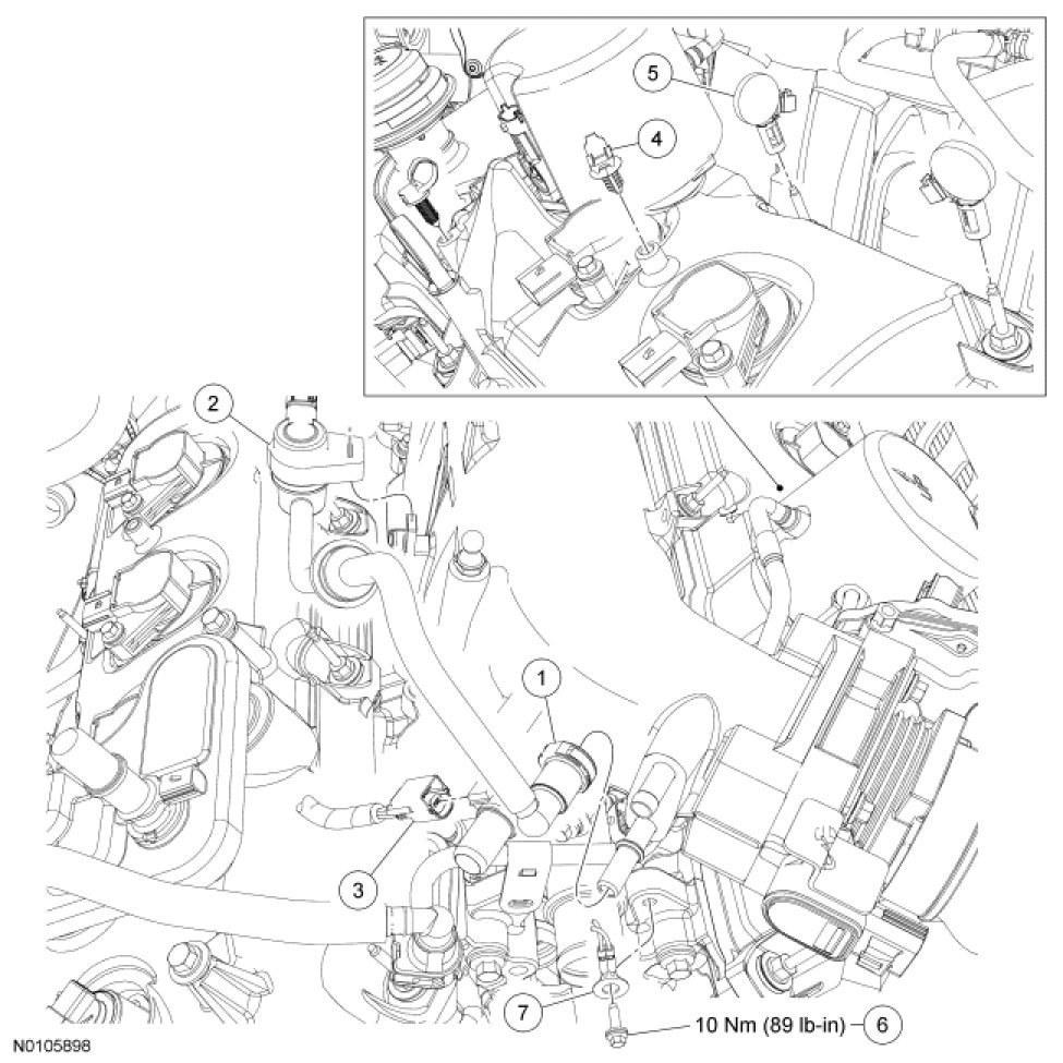 - Tighten in the sequence shown to 10 Nm (89 lb-in).