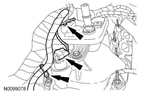 NOTE: Make sure the fuel rail wiring harnesses are routed correct.