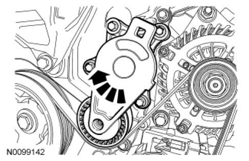 203. Rotate the accessory drive belt tensioner clockwise and install the accessory drive belt.