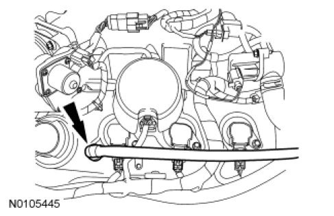 2. Disconnect the crankcase ventilation tube-to-valve cover fitting quick connect coupling. For additional information, refer to Fuel Delivery and Air Induction.