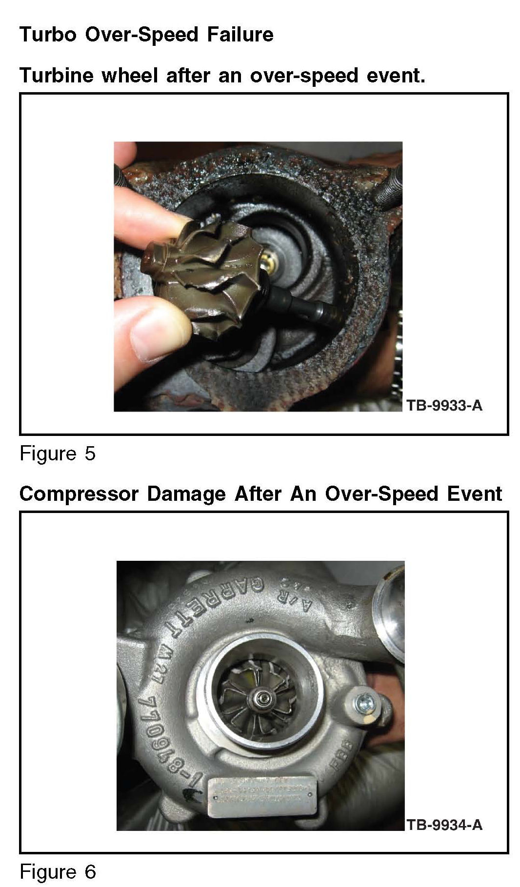 The system may be particularly susceptible to flexible air ducts between the air filter and the compressors. Restrictions on either side of the compressor can result in over-speeding the turbo (Figures 5-6).