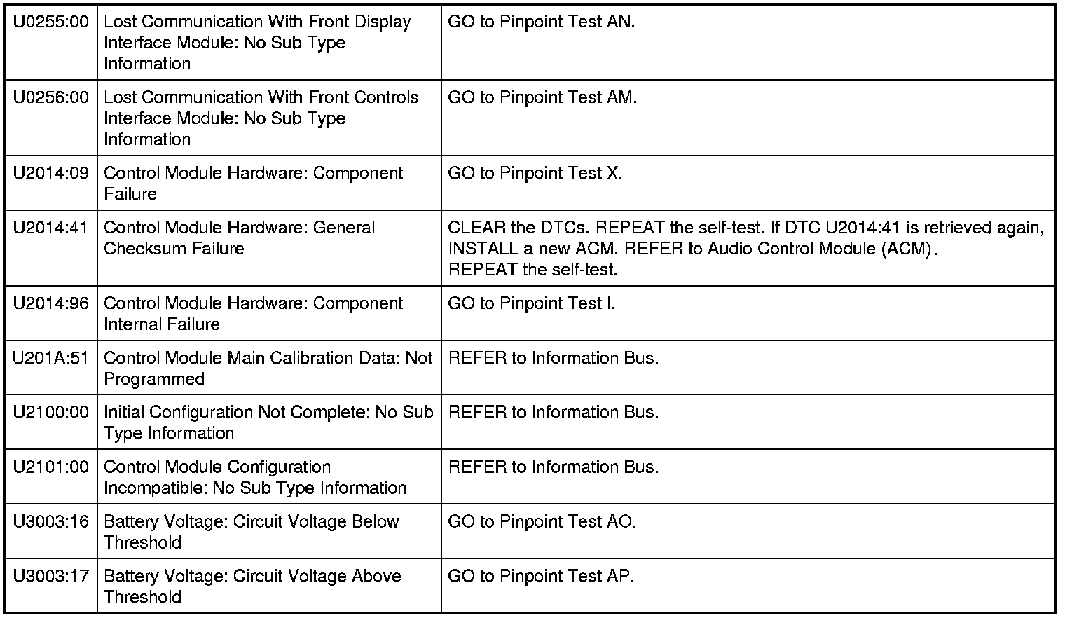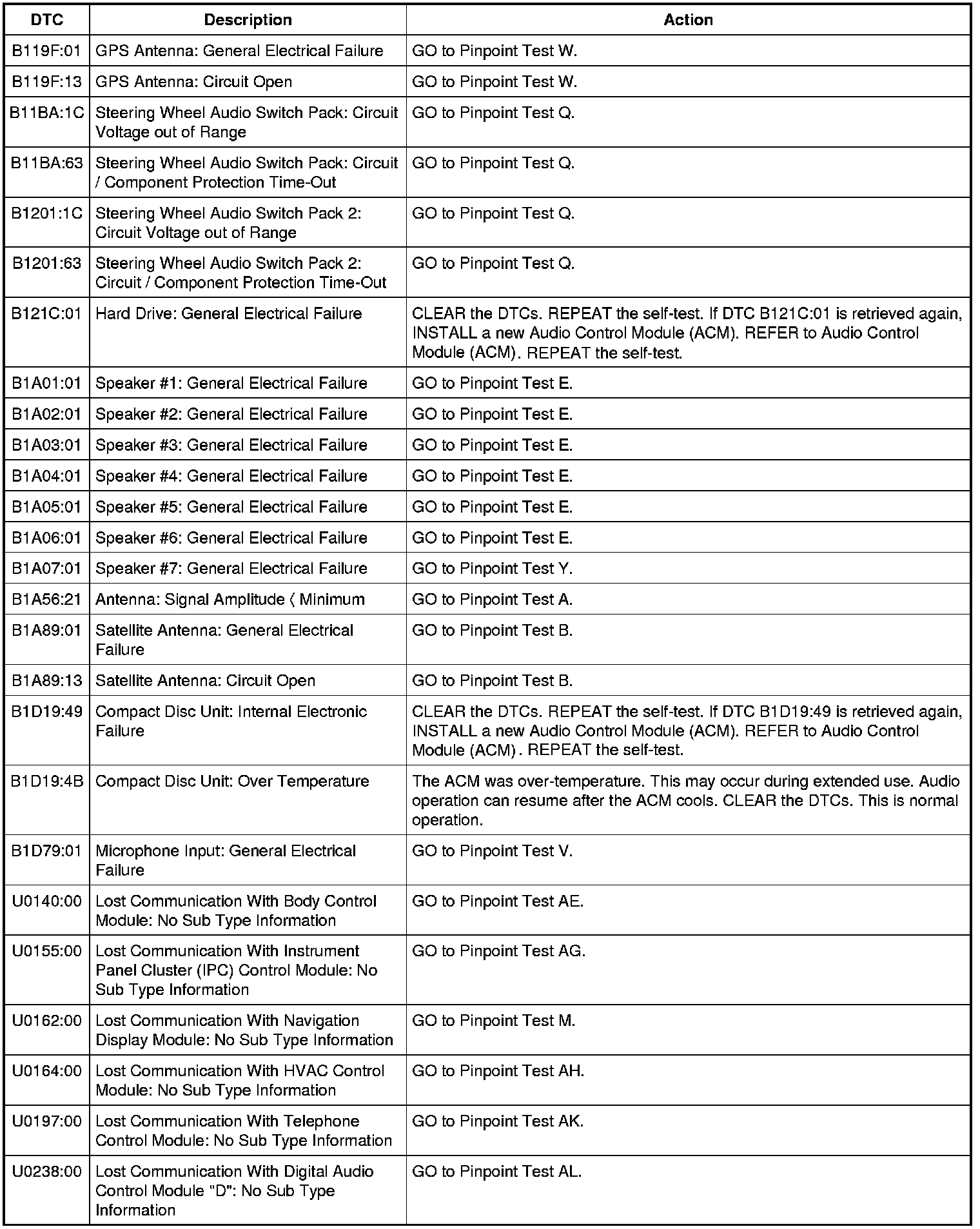 Audio Control Module (ACM) DTC Chart - With Navigation