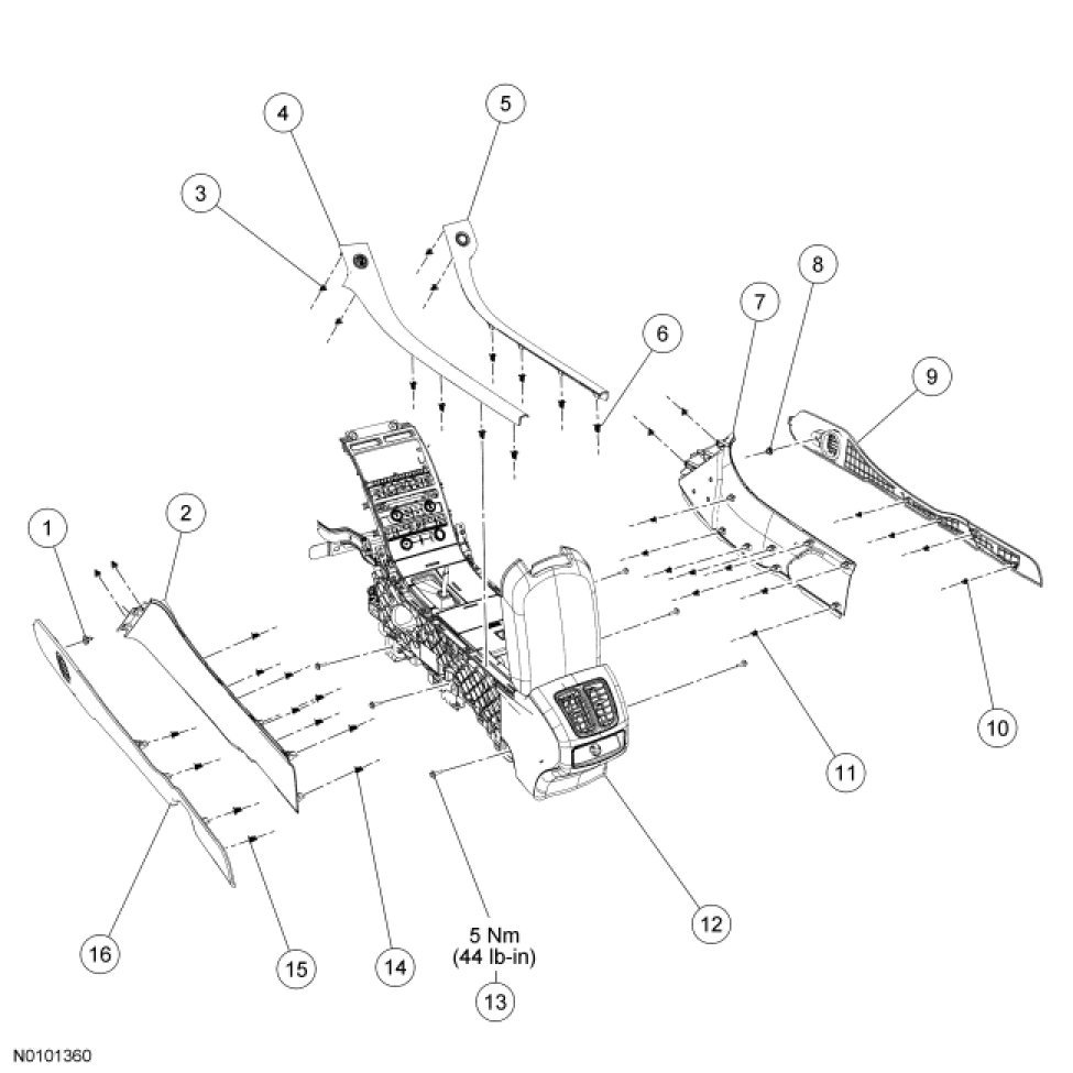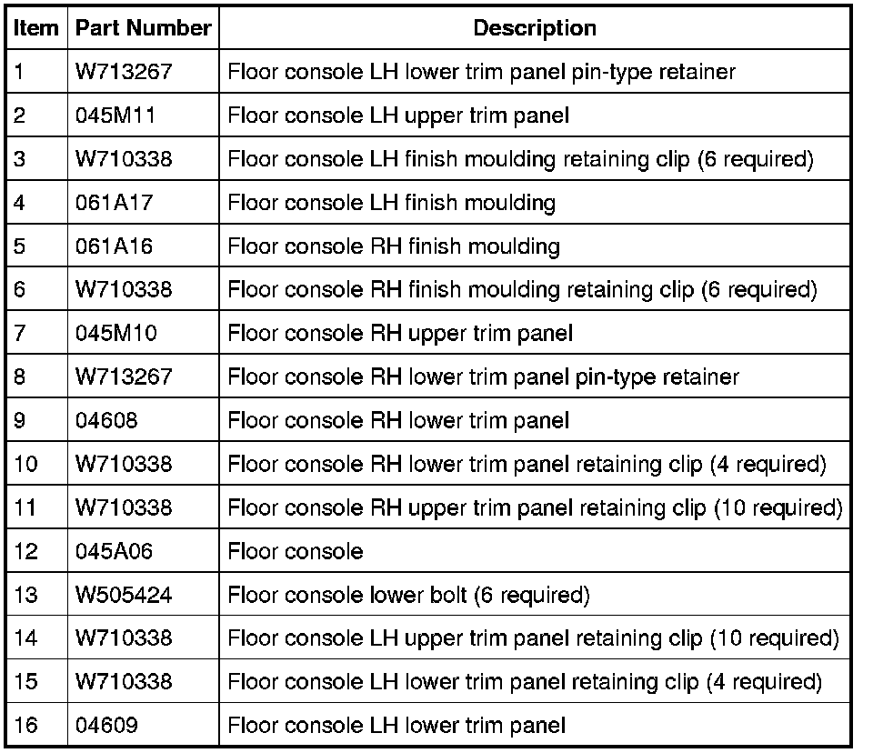 11. Remove the floor console LH and RH finish mouldings in the following sequence.