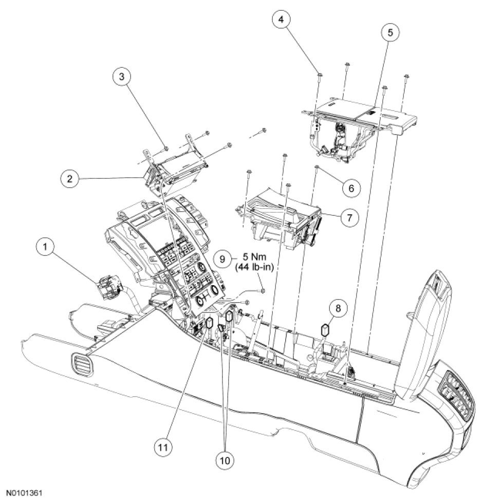 - Pull the floor console rearward to release the retaining clips from the instrument panel.