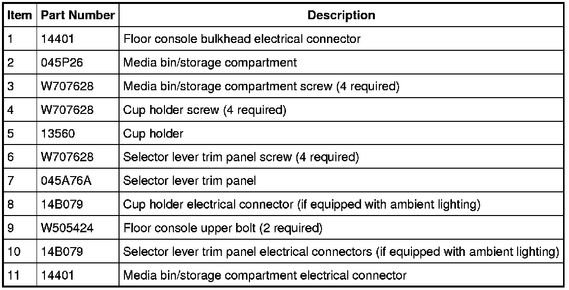 14. Remove the selector lever bezel. For additional information, refer to Automatic Transmission/Transaxle. Shifter A/T