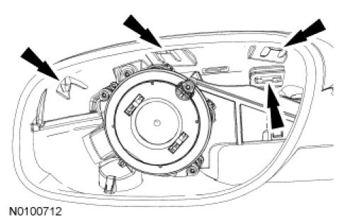 1. Remove the exterior mirror glass. For additional information, refer to Exterior Mirror Glass Exterior Mirror Glass.